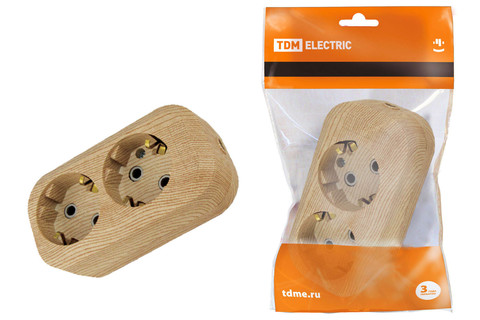 Колодка розеточная 2 гнезда 2П+З 16А 250В «Эко» (сосна) TDM SQ1806-0046
