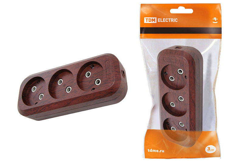 Колодка розеточная 3 гнезда 2П б/з 10А 250В «Эко» (бук) TDM SQ1806-0061