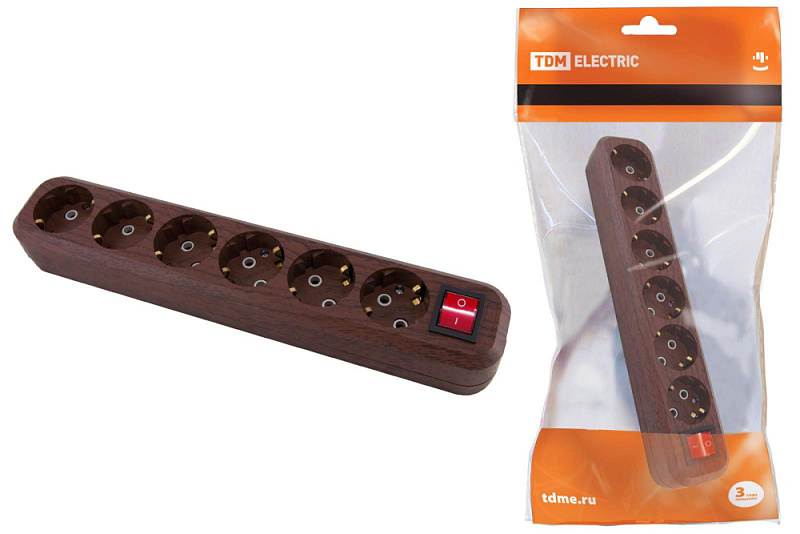 SQ1806-0072 Колодка розеточная 6 гнезд 2П+3 с выключателем16А 250В "Эко" (бук) TDM