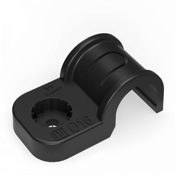 Крепеж-скоба 16мм пласт. односторонняя для прямого монтажа атмосферостойкая черная в п/э Промрукав