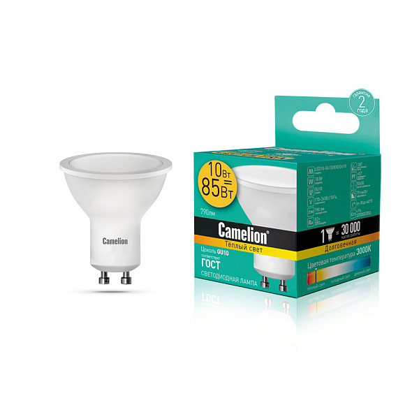 Технические характеристики Camelion LED10-GU10/830/GU10 10 Вт, 220 В 13682