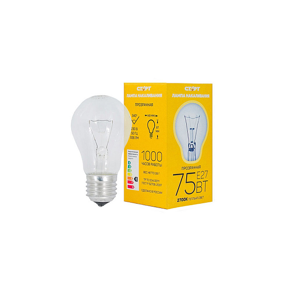 Лампа накаливания СТАРТ Б 75Вт Е27 обладает прозрачной грушевидной колбой, что обеспечивает более яркое свечение.