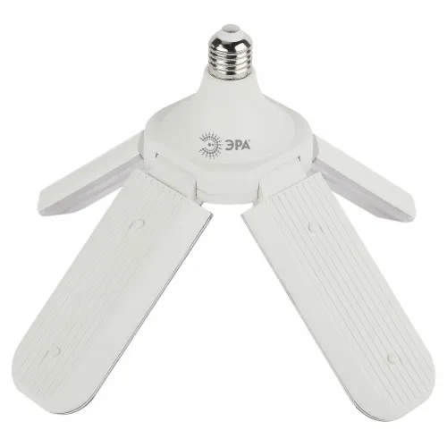 Лампа клевер ЭРА FITO-36W-RB-E27-FOLD на первый взгляд кажется странной и непривычной, но в лепестковой лампе за счет распределения печатных плат на большой площади проблема со съемом тепла с диодов решается намного легче и дешевле, чем в радиаторных лампах.
