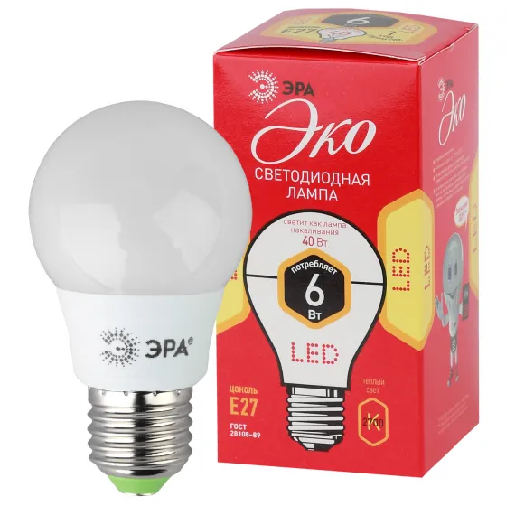 Бытовая светодиодная лампа ЭРА Серии Бюджет, создаёт яркое ровное освещение и экономит до 90% электроэнергии по сравнению с лампой накаливания с аналогичным световым потоком.