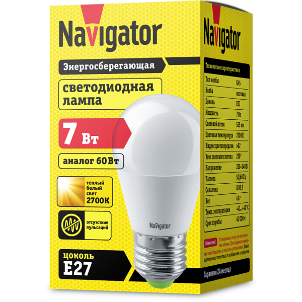 Cветодиодные энергосберегающие лампы общего освещения Navigator серии NLL-G повторяют форму и размеры стандартных ламп накаливания типа «шарик».