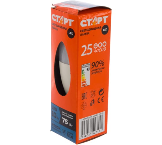Лампа светодиодная Е14 10Вт 6500К свеча СТАРТ ECO