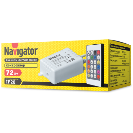 Контроллеры ND-CMRGB72IR позволяют создавать статические и динамические сцены светодиодной ленты NLS-«Бегущая волна», а также управлять интенсивностью ее света.