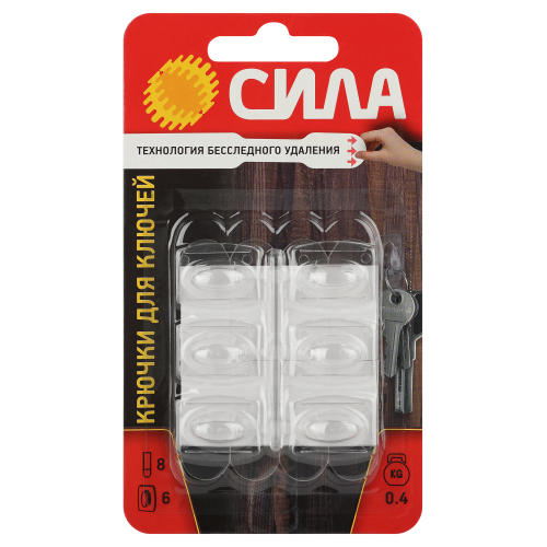 Крючки для ключей СИЛА с технологией бесследного удаления предназначены для крепления брелоков с ключами, декора и проводов.