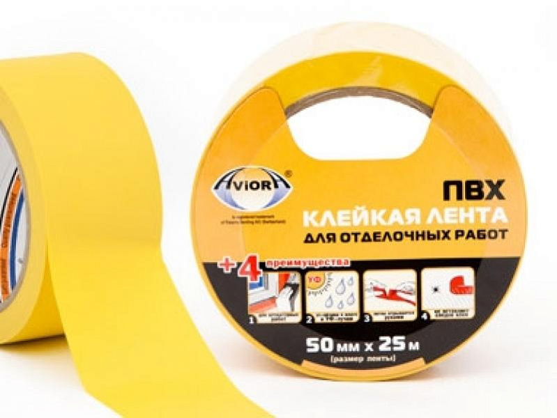 Лента малярная клейкая из ПВХ для наружных отделочных работ 50мм * 25м Aviora
