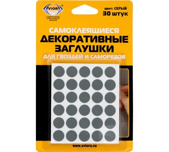 Заглушки самоклеящиеся декоративные для гвоздей и саморезов Aviora, серый