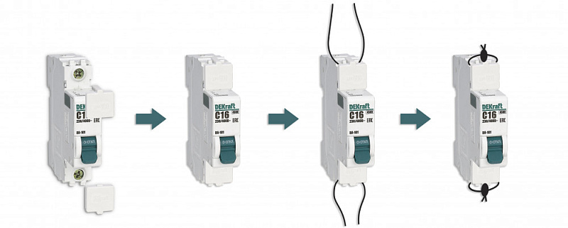 Заглушки клеммные КЗ-101 для автоматического выключателя серии ВА-101 Dekraft; предназначены для пломбирования клемм вводного выключателя; материал пластик.
