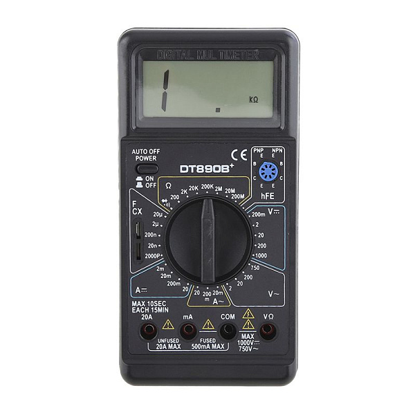 Мультиметр РЕСАНТА DT890B+ предназначен для измерения напряжения, тока, сопротивления, емкости, проверки диодов, транзисторов, звуковой прозвонки.