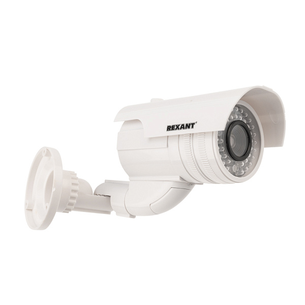 Муляж уличной цилиндрической камеры видеонаблюдения белого цвета с мигающим красным светодиодом неотличим от обычной камеры.