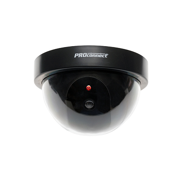 Муляж внутренней купольной камеры видеонаблюдения черного цвета с мигающим красным светодиодом неотличим от обычной камеры.