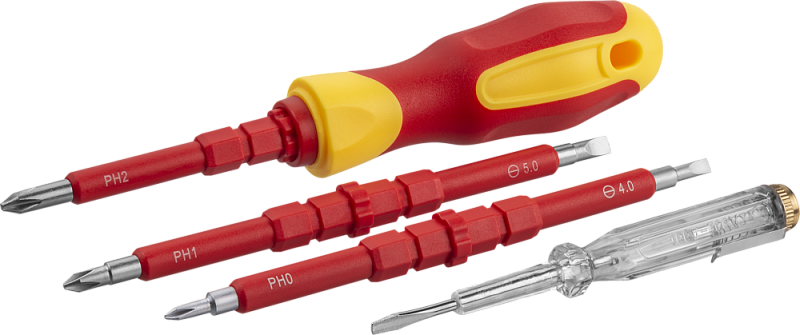 Набор отверток «7 в 1» Онлайт Монтаж OHT-Оtd02-7v1 предназначен для выполнения электромонтажных работ под напряжением до 1000 В переменного тока.