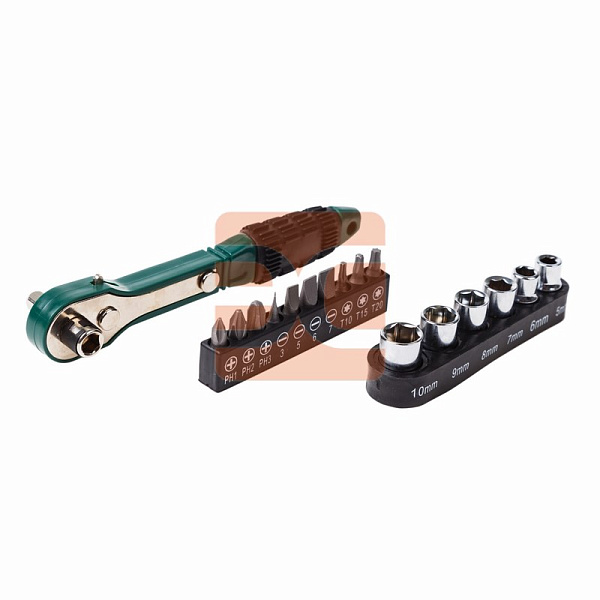 Для удобного хранения и транспортировки съемных торцевых головок и бит предусмотрены пластиковые планки.