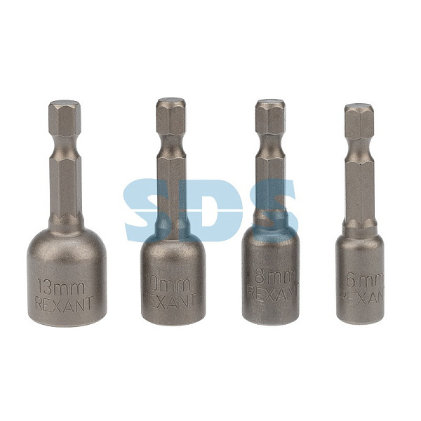 Набор ключей-насадок 6/8/10/13х48 мм магнитных для закручивания кровельных саморезов, болтов и гаек.