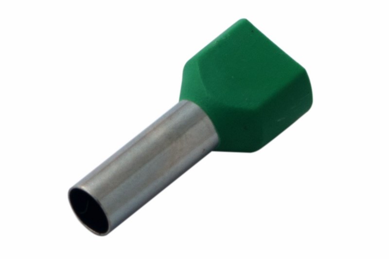 Втулочный наконечник состоит из латуни, с поверхностным электролитическим лужением, и рассчитан на монтаж 2 проводников с соответствующим сечением под опрессовку.