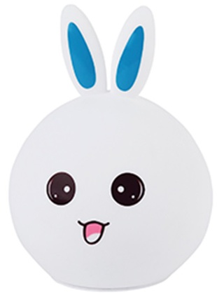 Силиконовая игрушка-ночник ЭРА NLED-416-2W-BU в виде зайчика с восхитительной улыбкой.