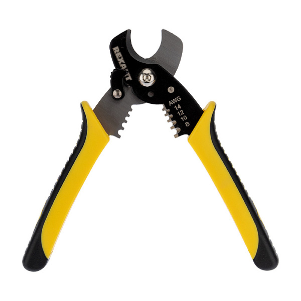 Инструмент 2 в 1 (стрипер и ножницы) предназначен для разрезания медных и алюминиевых одно- и многожильных проводов, а также для удаления изоляции (не подходит для стальной проволоки и проволочных канатов).