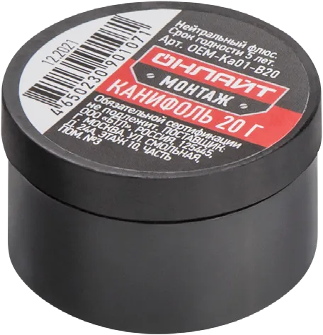 Канифоль Онлайт Монтаж серии OEM-Ka01 предназначена для высококачественной пайки и лужения радио- и электротехнических устройств.