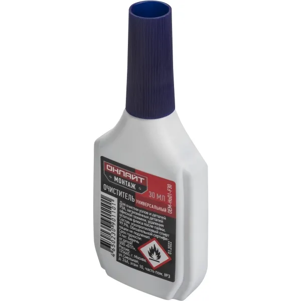 Очиститель универсальный Онлайт Монтаж OEM-Ho01-F30 предназначен для очистки узлов и деталей РЭА, загрязненных деталей офисной техники, а также для удаления остатков флюса после пайки.