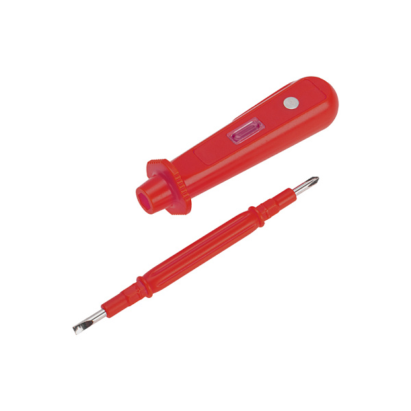 Тестер оснащен переставным жалом, которое может быть использовано в двух вариантах: крестообразное или шлицевое.