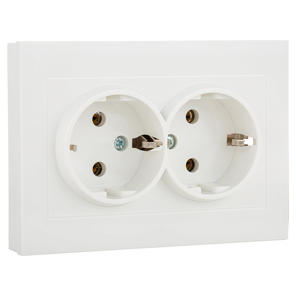 Розетка с заземлением 2 ОП 16А Ovivo Nivo белый