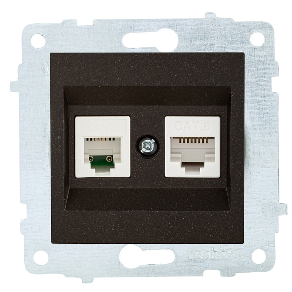 Розетка 1 СП комп. RJ45 кат.6 + телеф.RJ11 механизм Ovivo черный металлик