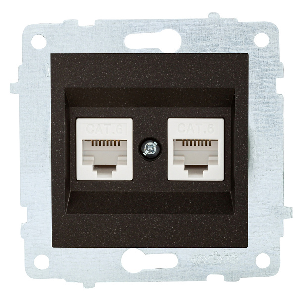 Розетка 1 СП комп. RJ45+RJ45 кат.6 механизм Ovivo черный металлик