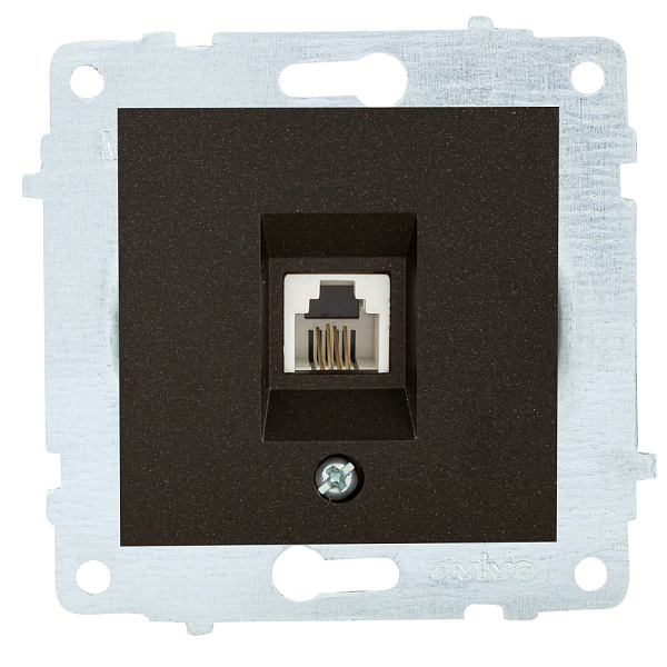 Розетка 1 СП телефонная RJ11 механизм Ovivo черный металлик