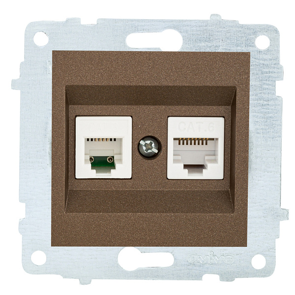 Розетка 1 СП комп. RJ45 кат.6 + телеф.RJ11 механизм Ovivo мокко