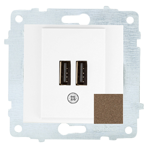 Розетка 1 СП USB А+А 2А 5V механизм Ovivo мокко