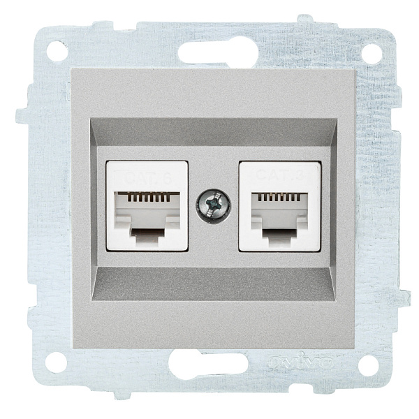 Розетка 1 СП комп. RJ45 кат.6 + телеф.RJ11 механизм Ovivo серебро