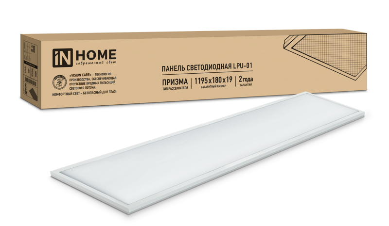 Универсальная светодиодная панель LPU-01 ПРИЗМА от ТМ INHOME для накладного монтажа – это экономия, долговечность и прекрасная замена люминесцентных светильников.