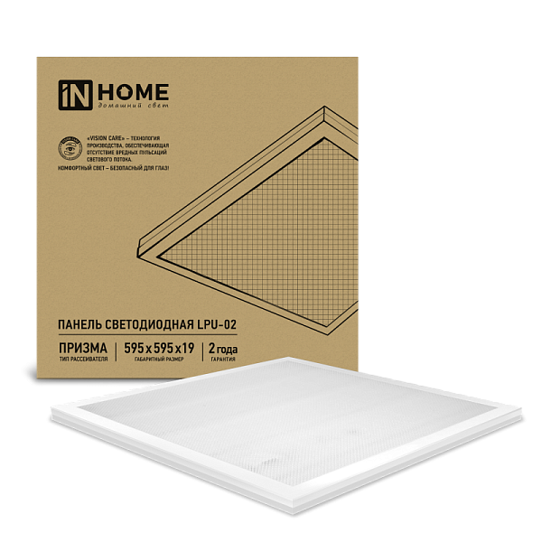 Универсальная светодиодная панель LPU-02 ПРИЗМА от ТМ INHOME для потолков «Армстронг» – это экономия, долговечность и прекрасная замена люминесцентных светильников.