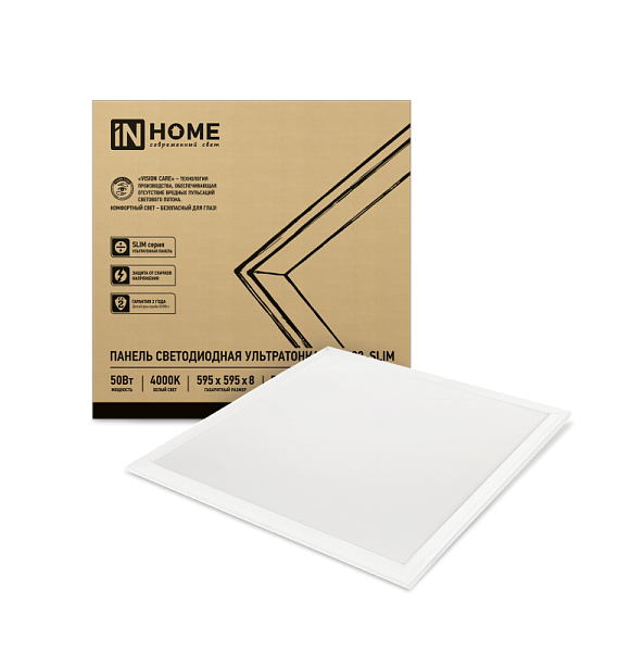Серия ультратонких светодиодных панелей LP-02-SLIM от ТМ INHOME в белом корпусе представлена в двух мощностях: 36 и 50 Вт.