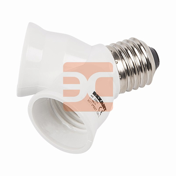 Цокольный разветвитель E27 на 2 гнезда предназначен для подключения нескольких ламп с цоколем E27 одновременно к одному источнику.