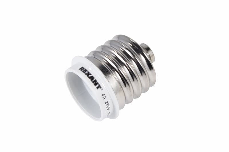 Переходник цокольный Е-40 на Е-27 REXANT применяется при переходе от электрических ламп с цоколем Е40, к электрическим лампам с цоколем Е27.