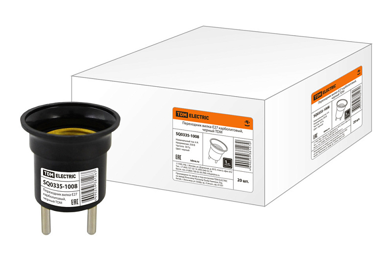 SQ0335-1008 Переходник вилка-Е27 карболитовый, черный TDM
