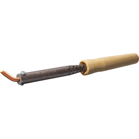 Жало паяльника изготовлено из бескислородной 100 % меди марки М1, обладает высокой теплопроводностью и теплоемкостью, что позволяет быстро и качественно провести лужение.