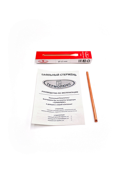 Комплектация - Сменный паяльный стержень, шт - 1 - Руководство по эксплуатации, шт - 1 - Упаковочная коробка, шт -1 3.