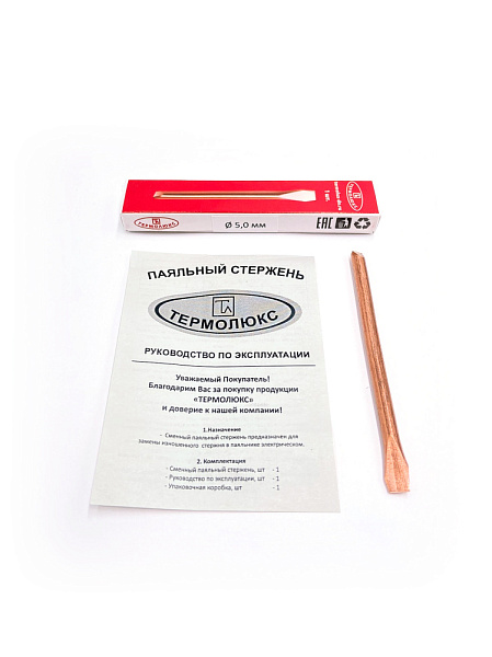Комплектация - Сменный паяльный стержень, шт - 1 - Руководство по эксплуатации, шт - 1 - Упаковочная коробка, шт -1 3.