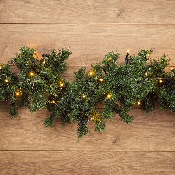 Порой у нас нет возможности разместить полноценную ель в ограниченном пространстве, именно поэтому Вам подойдет гирлянда "еловый шлейф", которая состоит из соединенных между собой еловых ветвей с размещенными на них микролампами.