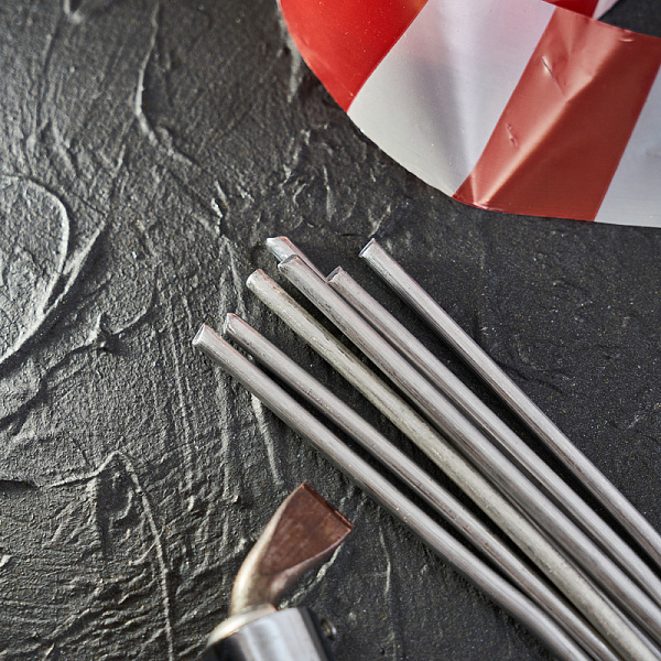 Представляет собой пластичный мягкий пруток из сплава олова (40 %) и свинца (60 %).