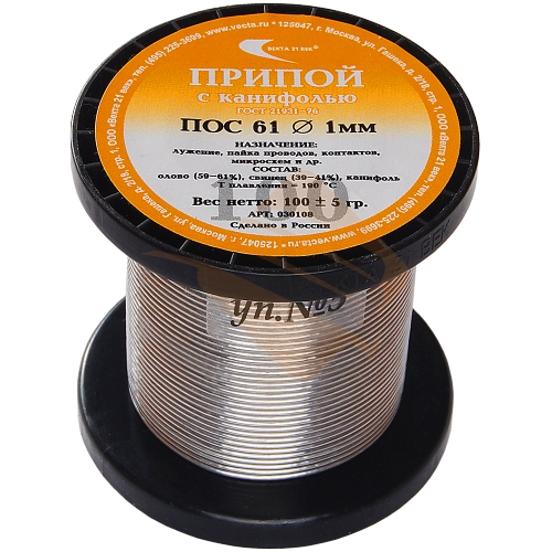 Припой ПОС 61 Т1А (100гр) катушка с канифолью