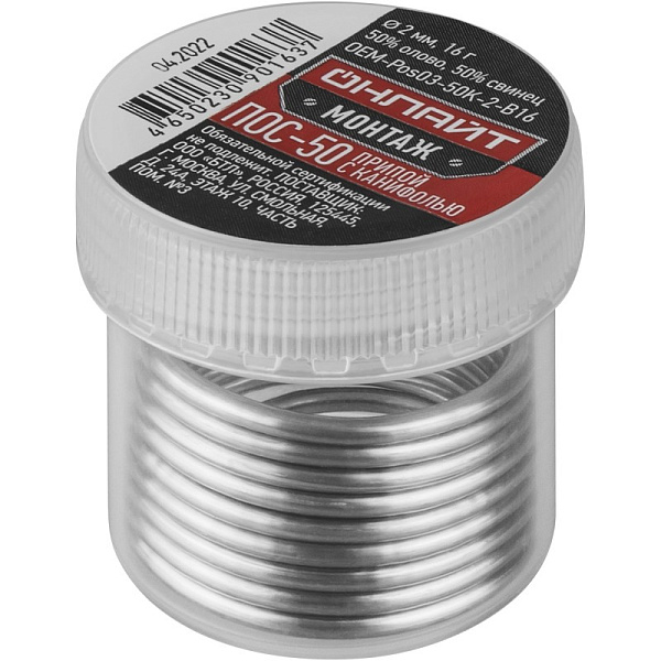 Припои с канифолью ПОС-50 Онлайт Монтаж предназначены для пайки и лужения радио- и электроаппаратуры, печатных схем, где недопустим перегрев.