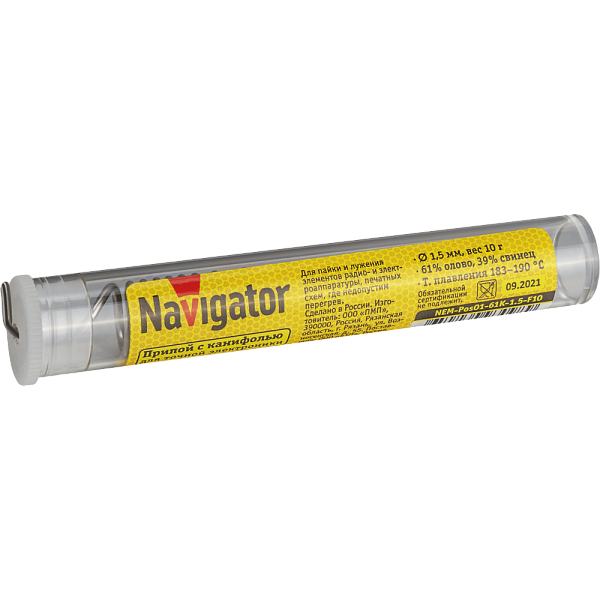 Припои с канифолью ПОС-61 Navigator предназначены для пайки и лужения радио- и электро-аппаратуры, печатных схем, где недопустим перегрев.