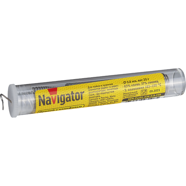 Припои с канифолью ПОС-63 Navigator предназначены для пайки и лужения радио- и электроаппаратуры, печатных схем, где недопустим перегрев.