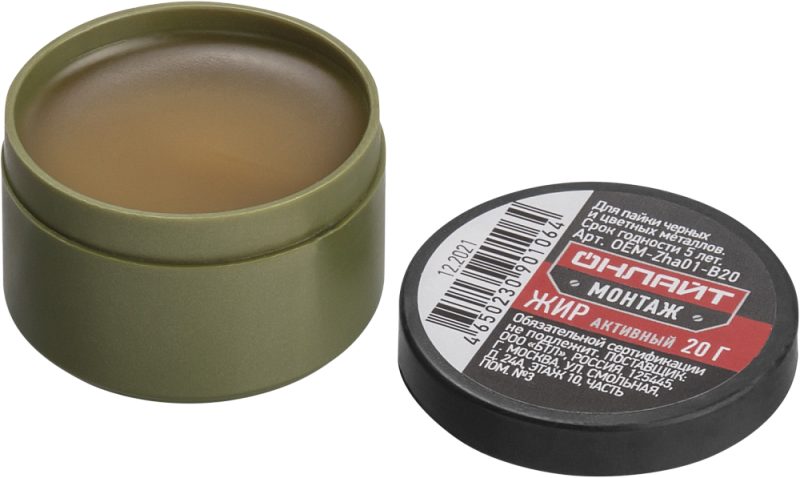 Жир паяльный активный Онлайт Монтаж предназначен для пайки сильно окисленных деталей из черных и цветных металлов.